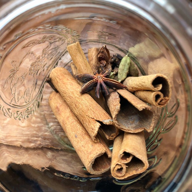 - With the mesh strainer, funnel and Ball jar, strain out the spices and tea bags, into the Ball jar.