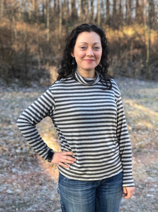 Hello there! I’m excited to share about a handmade turtleneck that I recently sewed with Minerva. The drapey viscose knit fabric pairs really well with the Rise and Fall turtleneck by Papercut Patterns.