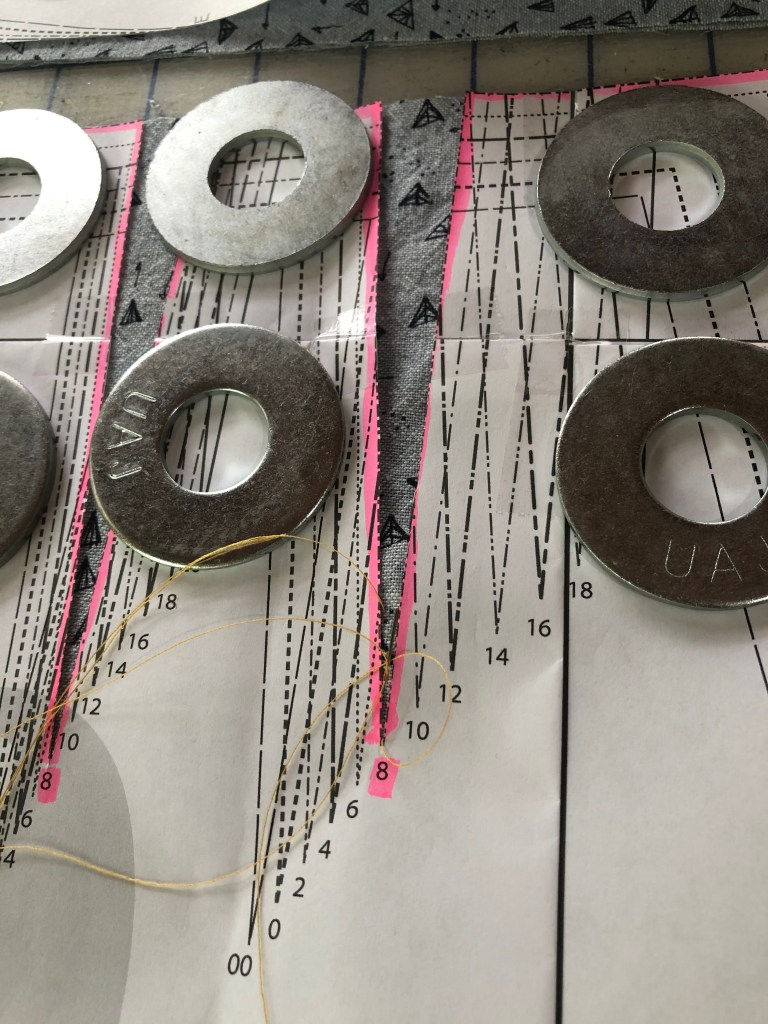 There are multiple pattern pieces included in the pattern so I like to keep them together with the fabric, right after they’re cut.