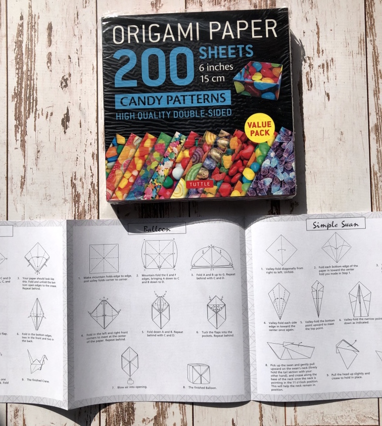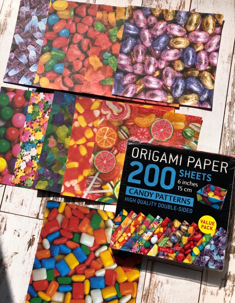 I added to the fun, pairing the Candy Patterns Origami Paper pack with the Love Notes instruction booklet. 200 origami papers can last a long time!