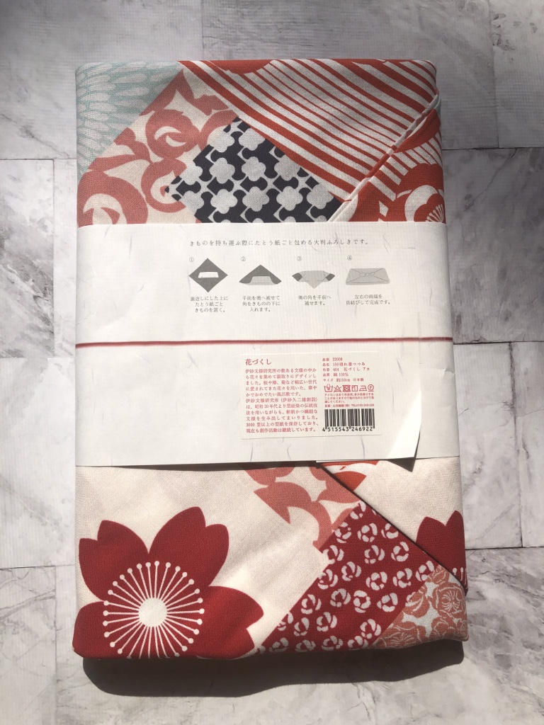The Furoshiki cloths that I used for this review are quite lovely!! I intentionally picked multiple sizes to pair with different sized projects. For all but one cloth I picked 100% cotton as I enjoy natural materials. I also selected one cloths in a polyester to give it that fabric base a try. The cloths came beautifully folded and the packaging around the cloths were really special. I wanted to note that the shipping option for this order was $15 (shipped with tracking to me in the U.S. from Japan). I was shocked that shipping to me took one day to arrive to me. Yes, that’s right, one day! I couldn’t get over how quick the package came to me.