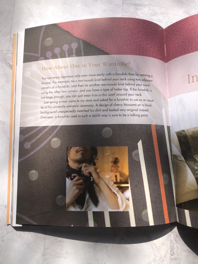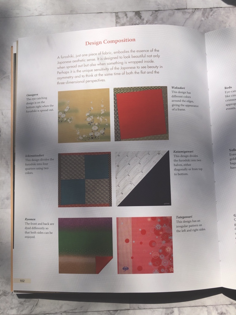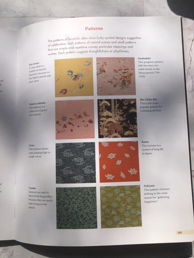 I loved this next section, sharing about the sizes of Furoshiki cloths, details behind the materials of the cloths, the prints and designs of the cloths, and more details with the history and uses.
