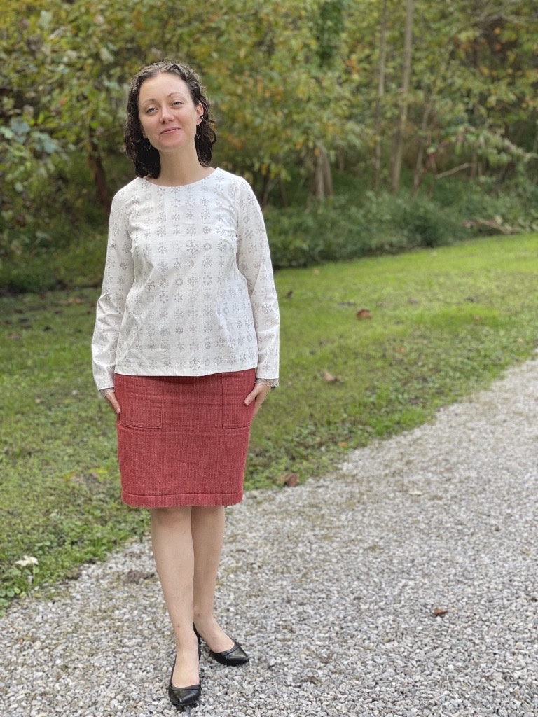 Hello! I’m quite excited to share about a festive shift top I made with a Snowflake print from Minerva. I wanted a festive top that I could wear through Christmas and the fall/winter.