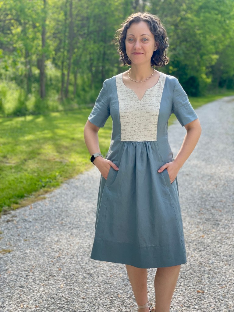 Hello! I have a fun project to share about with you today, a Cinema Dress by Liesl and Co with fabric from Minerva.