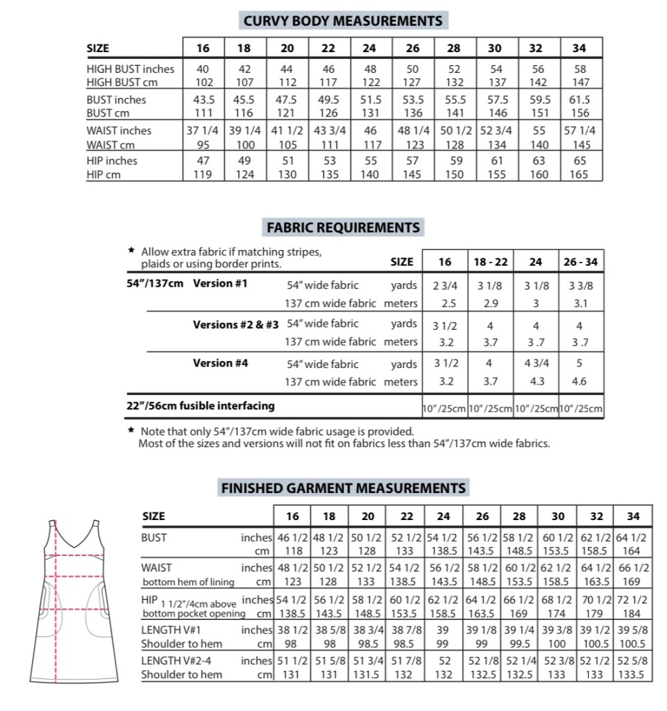 Pattern Sizing: Standard Sizing, Bust 31” 79cm – 47” 119cm Hips 34” 86cm – 50” 127 cm