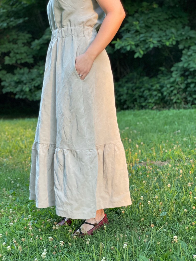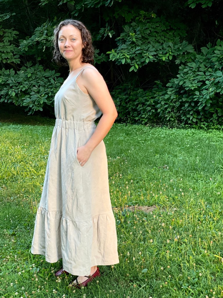 Hello! I have a lovely, new pattern to share about today, the Sauvie Sundress by Sew House Seven. There are lots of versions and options included in the pattern. I made Version 4 with Pocket B, inseam pockets. I’ll share a pattern review with you to share more details about the pattern.