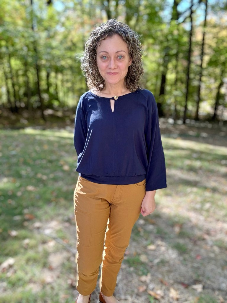 I’ve not yet made this top in a navy! I’ve made this top a few times but this version has been quite fun to wear. I’m a sucker for a viscose or rayon challis fabric (to work with and to wear).